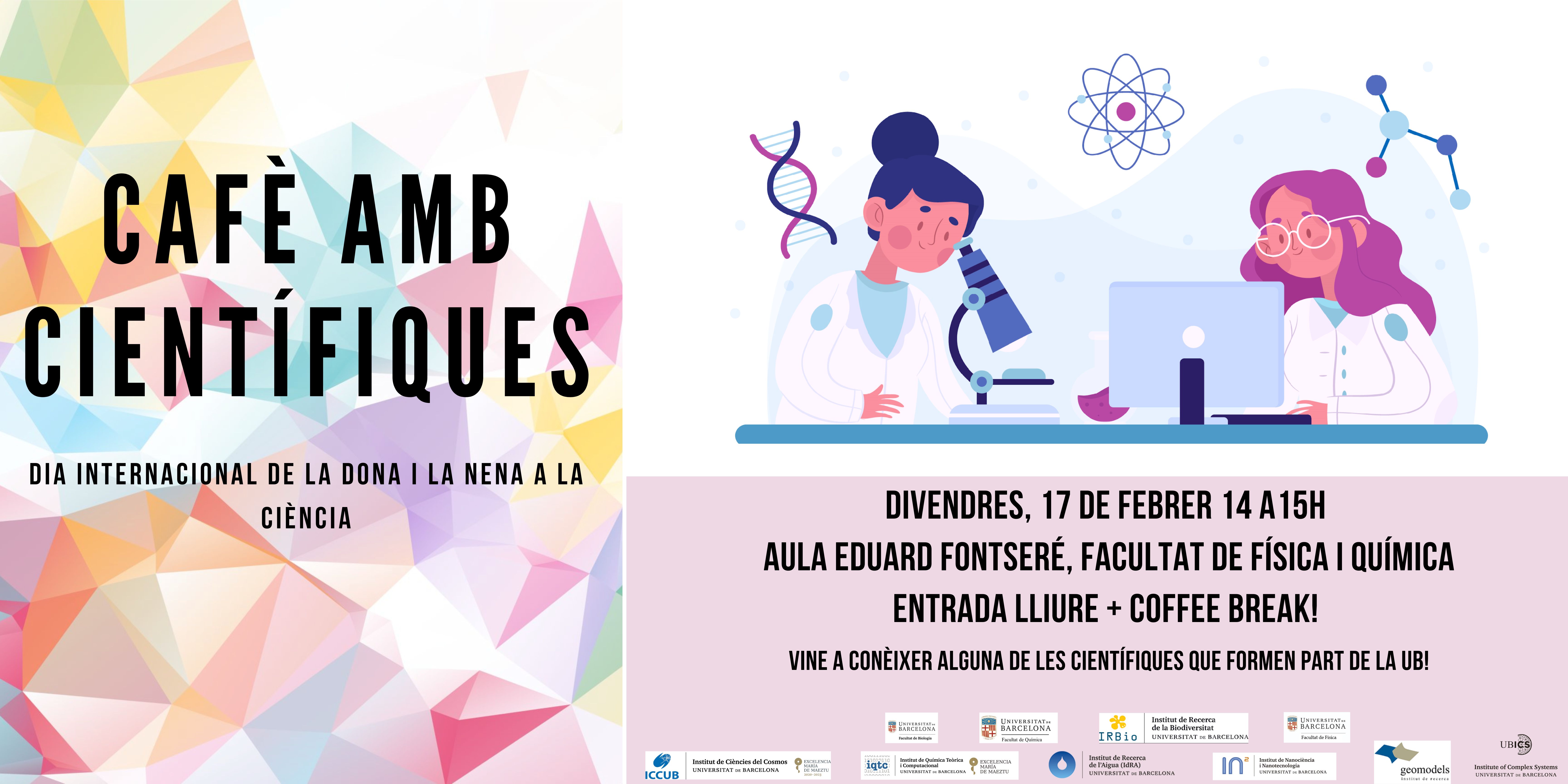 Has pensat mai a fer carrer a la ciència? No estàs molt segura de com és? A aquesta activitat convidem a tothom, especialment dones en ciència, a compartir un espai amb diferents científiques per posar en comú diferents aspectes de la carrera científica sent dona. Farem un col·loqui amb les participants i també gaudirem d’un coffee break per fomentar un espai de trobada entre dones científiques.