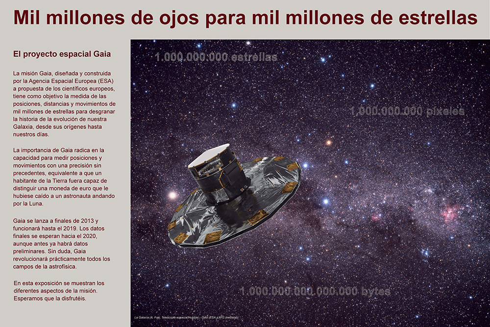 The exhibition "Mil milions d'ulls per a mil milions d'estrelles" is dedicated to the Gaia mission, designed and built by the European Space Agency to measure the positions, distances and movements of billions of stars.