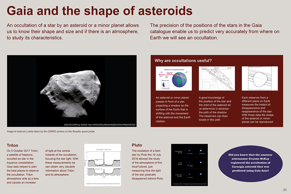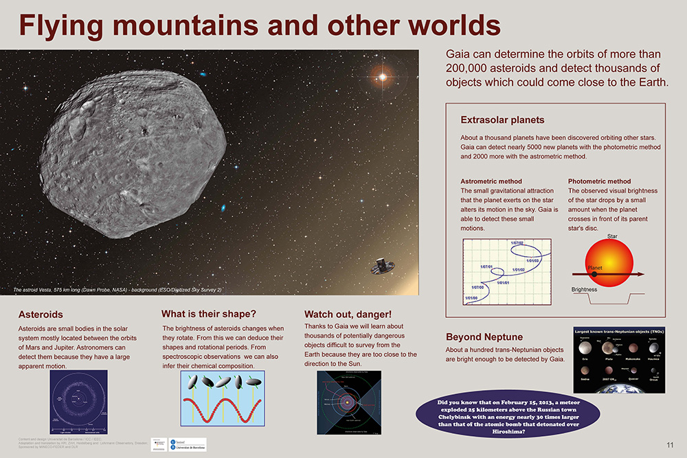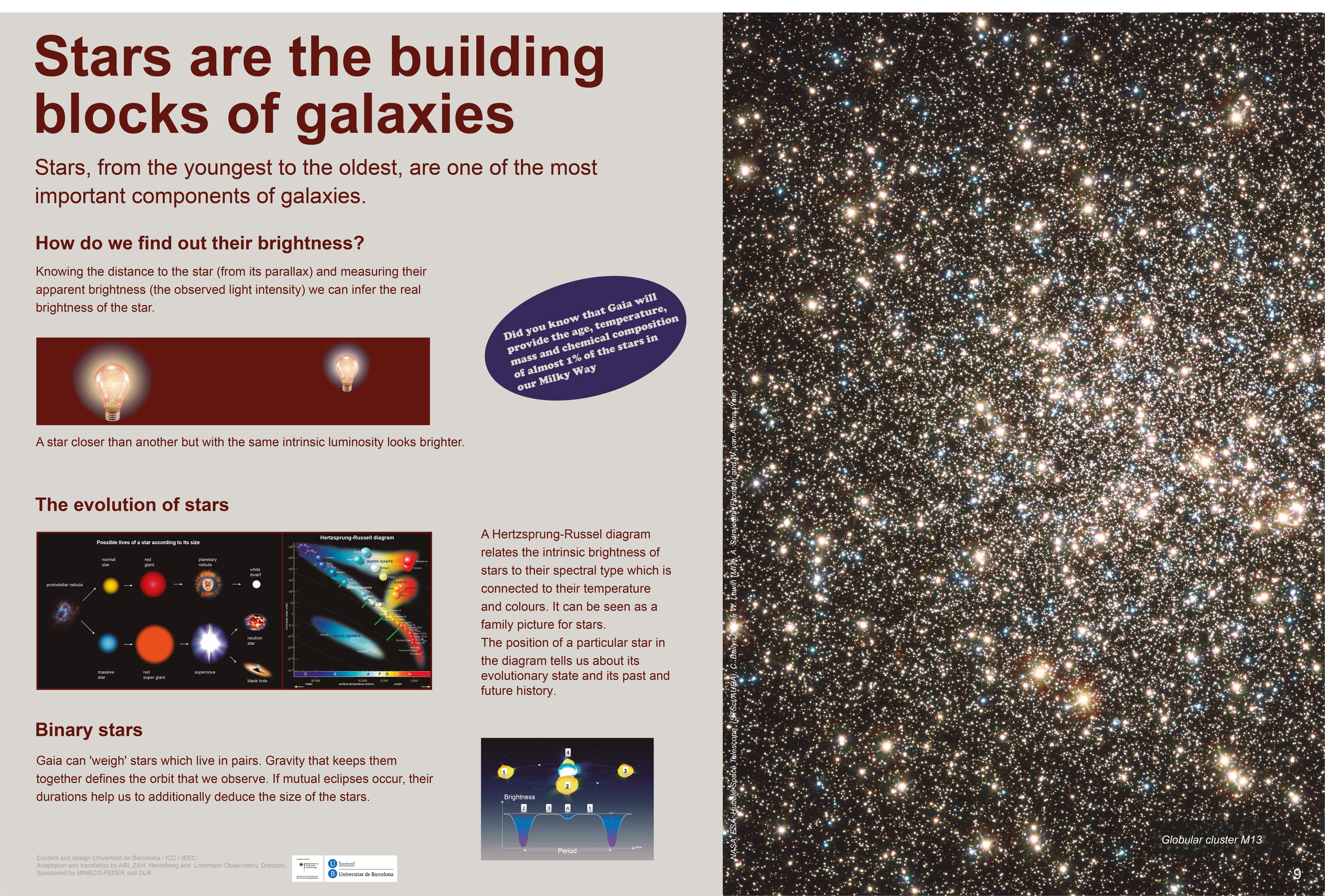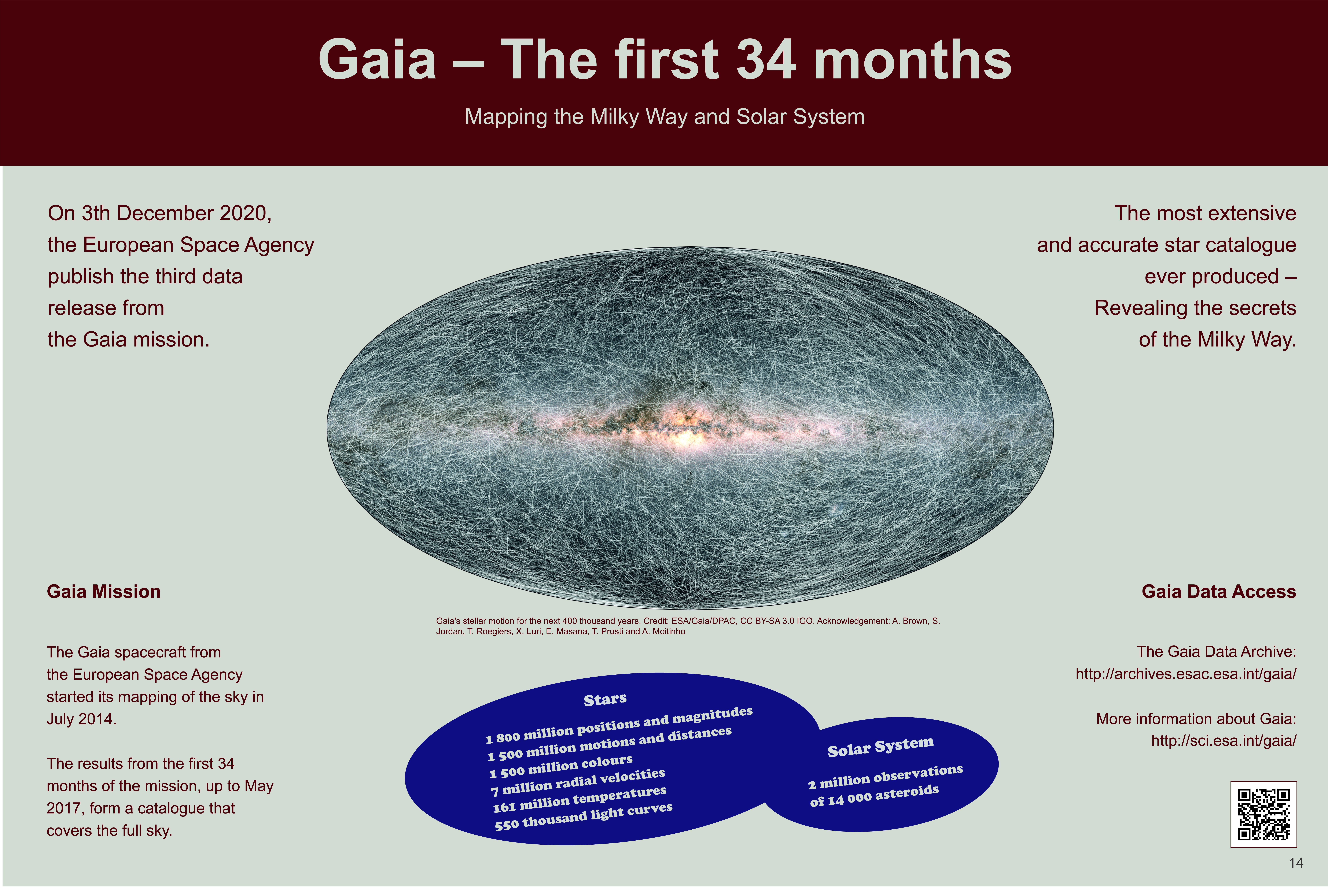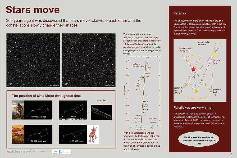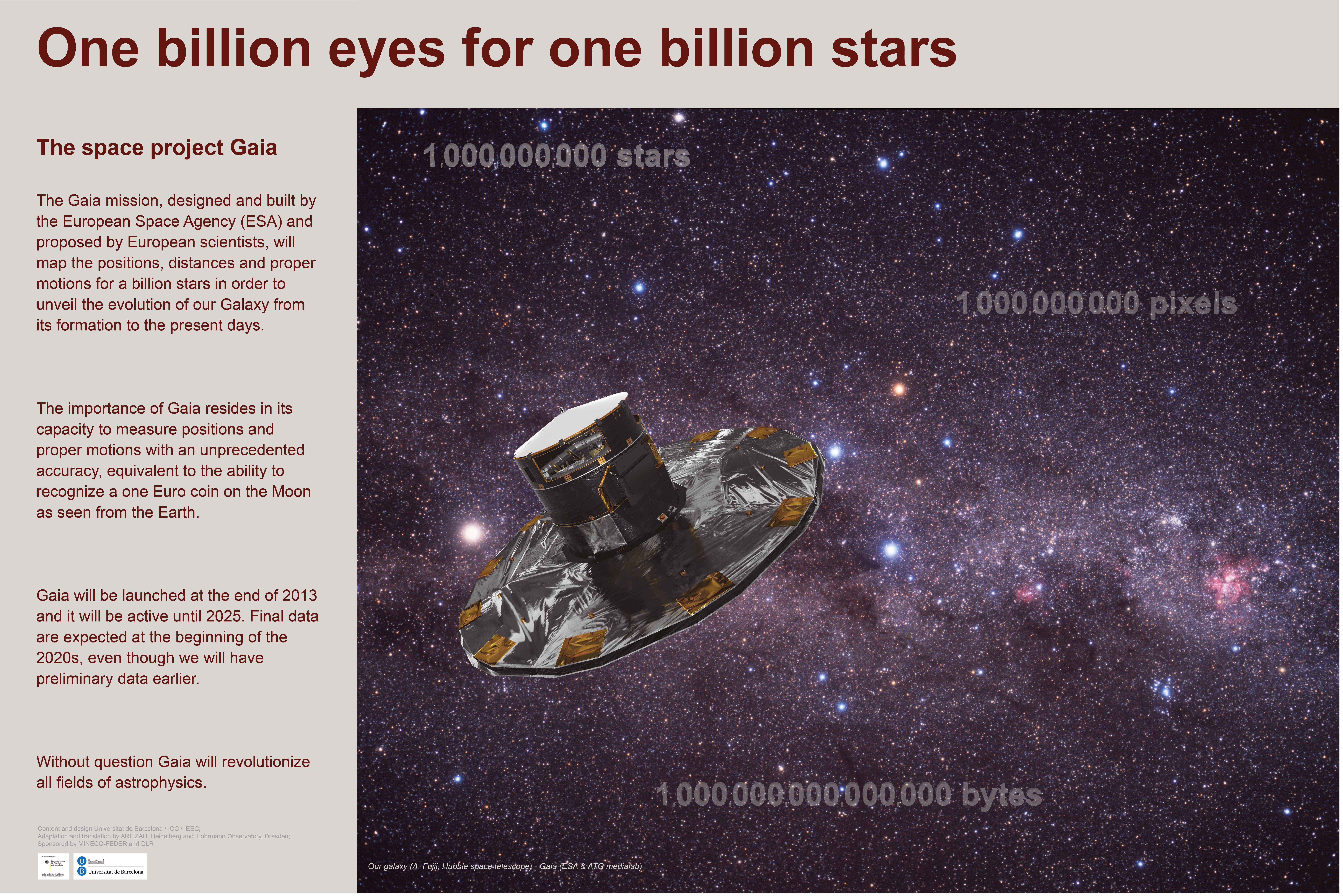 Exposició itinerant dedicada a la missió Gaia, dissenyada i construïda per l’Agència Espacial Europea a proposta dels científics europeus per a la mesura de les posicions, distàncies i moviments de mil milions d’estrelles.