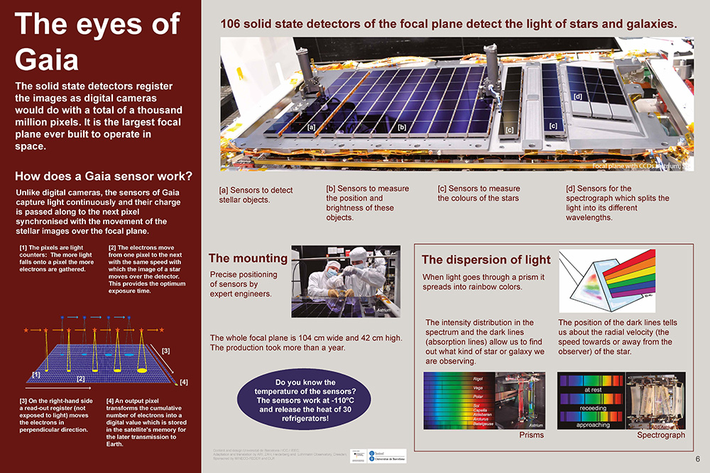 - Tècnic: un recorregut per els aspectes tècnics que mostren el funcionament de Gaia. 13 plafons.