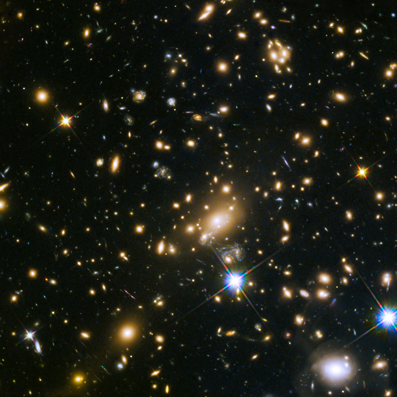 La fotografia que acompanya aquest article mostra l'enorme cúmul de galàxies MACS J1149.5+223, la llum del qual va trigar més de 5 mil milions d'anys a arribar fins a nosaltres. L'enorme massa del cúmul deflecteix la llum dels objectes situats al seu darrere, i en magnifica i distorsiona les imatges, fins a crear imatges múltiples en alguns casos. L'efecte crea múltiples imatges de cadascun dels objectes distants. Crèdits: NASA, ESA, S. Rodney (John Hopkins University, USA) and the FrontierSN team; T. Treu (University of California Los Angeles, USA), P. Kelly (University of California Berkeley, USA) and the GLASS team; J. Lotz (STScI) and the Frontier Fields team; M. Postman (STScI) and the CLASH team; and Z. Levay (STScI).